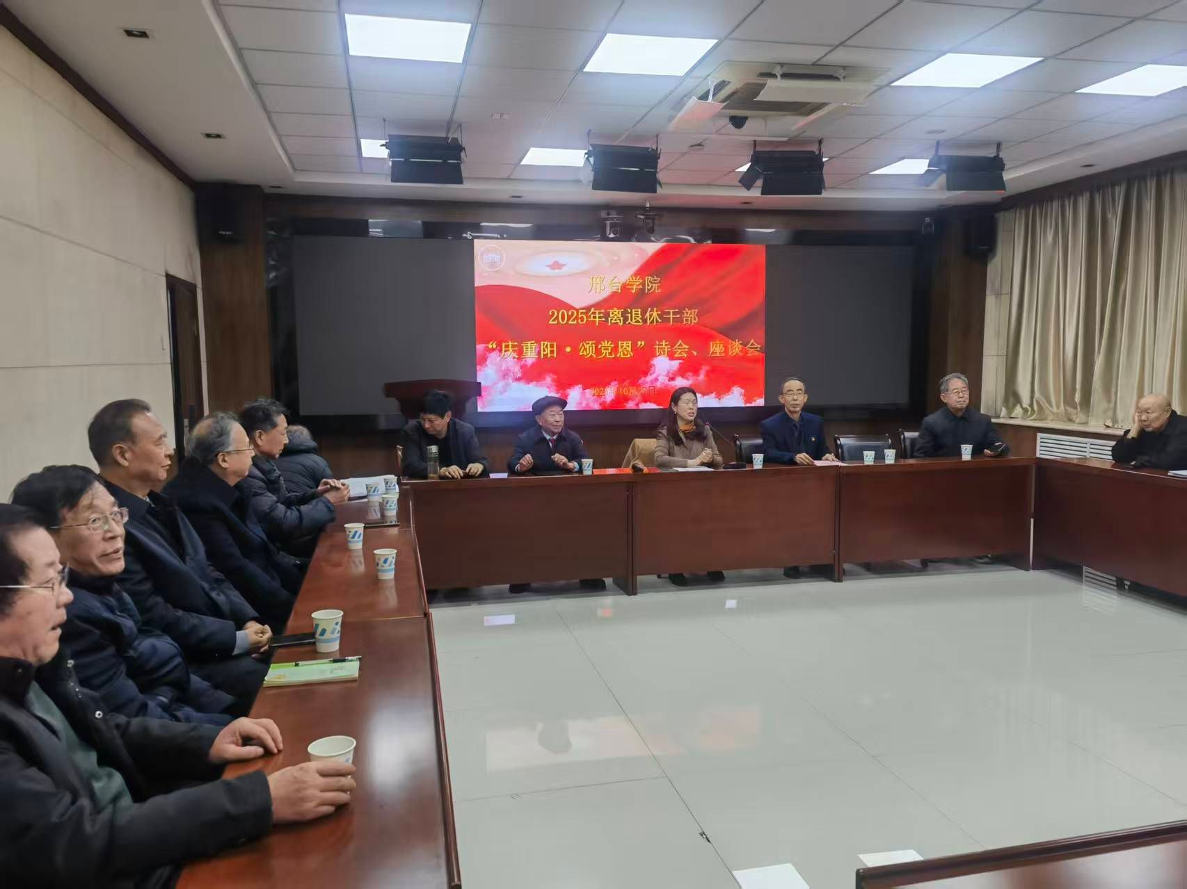 菊花正黄,秋风正爽,10月29日,又是一年重阳节,为弘扬中华民族尊老敬老的传统美德,表达对离退休同志的关怀与敬意,展现离退休老同志退休不褪色、时刻牢记党的纪律使命、抒发爱党爱国爱校的情怀、歌颂党的伟大领导,离退休人员管理处精心组织,在行政楼1010楼会议室举办了“庆重阳、颂党恩”活动,离退休老同志代表三十余人参加活动。